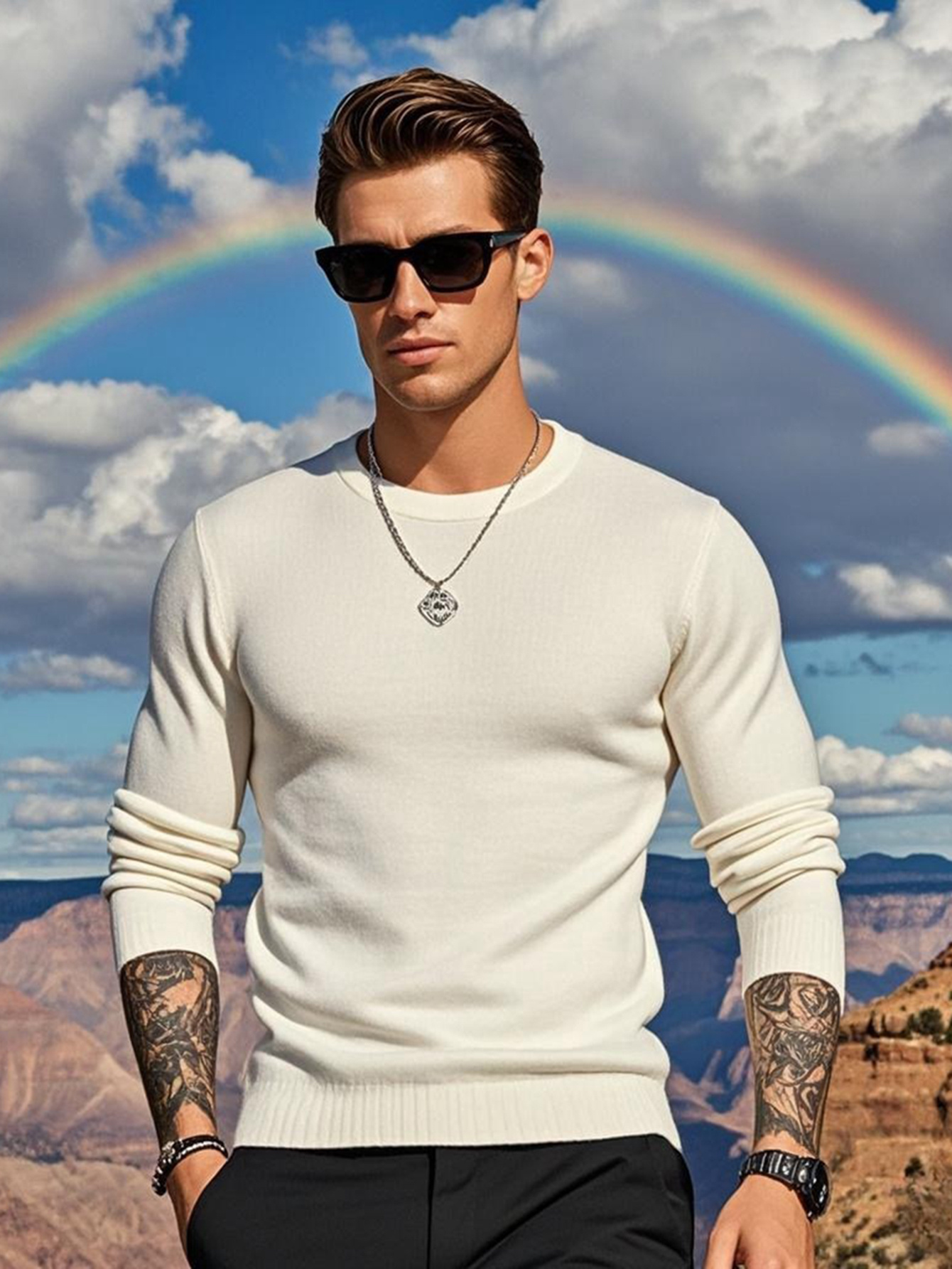1pc HDW Men'S Casual Viscose Sweater - Crew Neck, Solid Color, Loose Fit, Knit Fabric with Slight Stretch, Regular Style