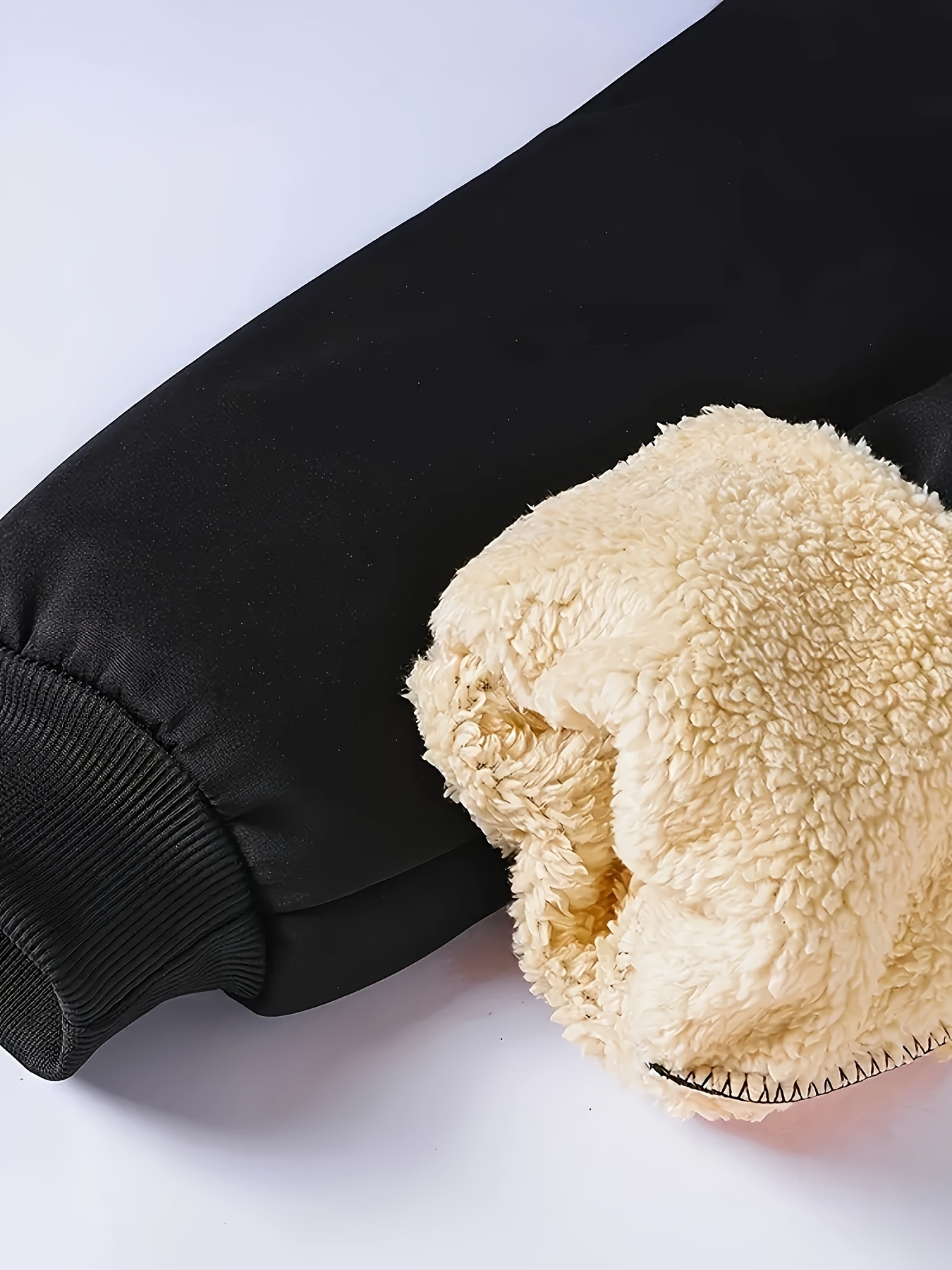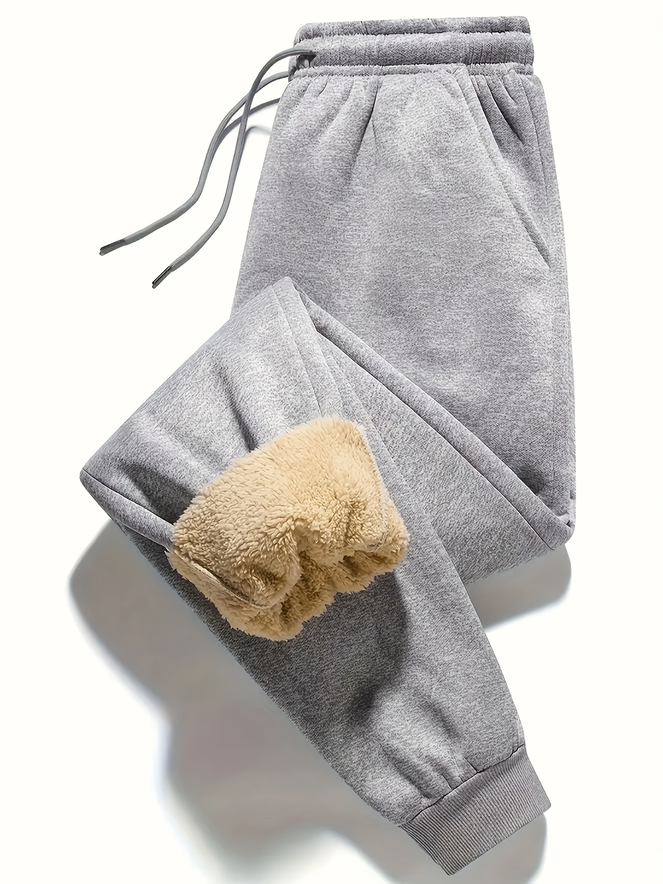 1pc Men'S Casual Mid Waist Sweatpants, Fall/Winter Thick Fleece Lined, Solid Color Polyester Knit Fabric, Non-Stretch, Regular Fit Drawstring Waist, Weekend Comfort Warmth, No Belt - Polyester Fiber Filled