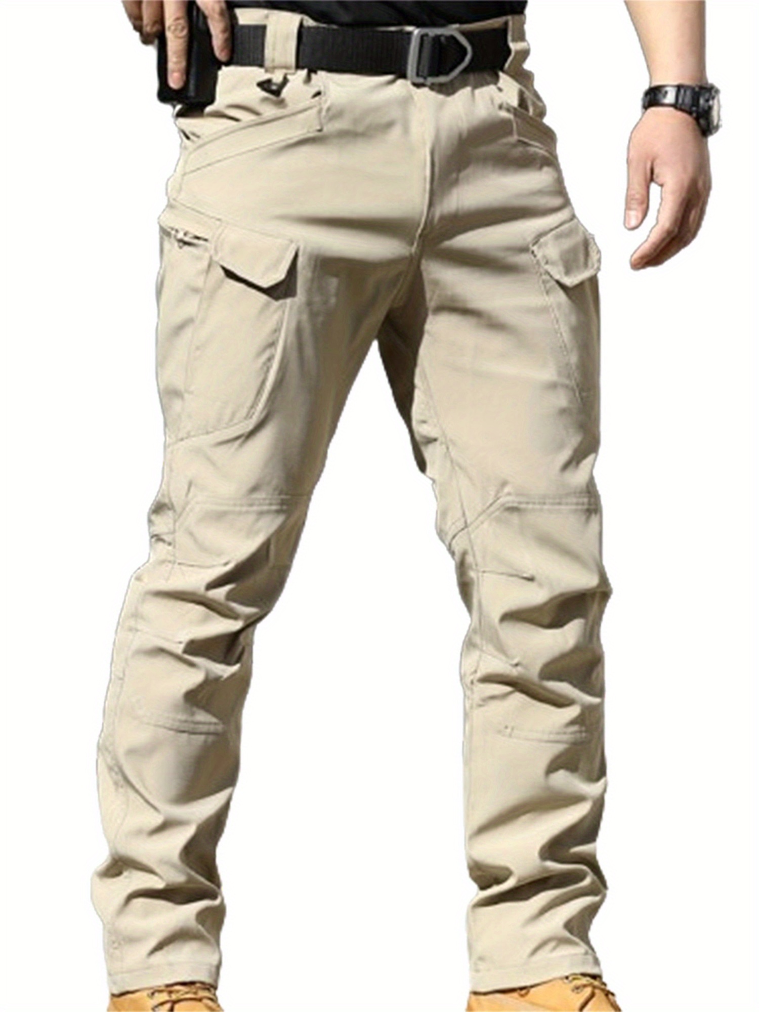 1pc Men'S Tactical Cargo Pants - Solid Color, All-Season, Polyester, Regular Fit, Slight Stretch, Multi-Pocket Design, Casual Style, Woven Trousers for Adults
