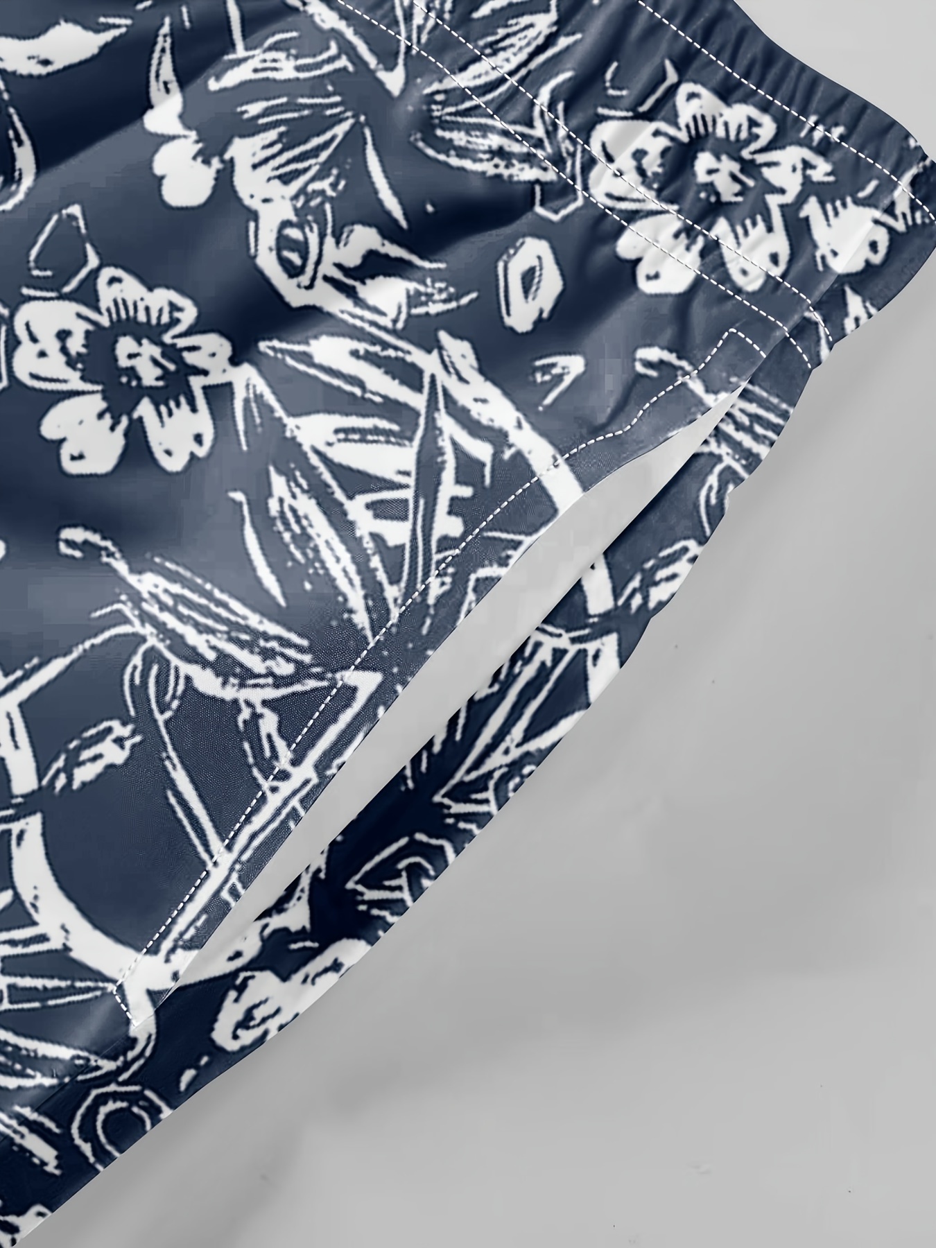 Flower Pattern Men's Drawstring Beach Pants Loose Casual Waist Trousers Simple Style Comfy Shorts For Spring Summer Outdoor Fitness Holiday Seaside Vacation Leisure