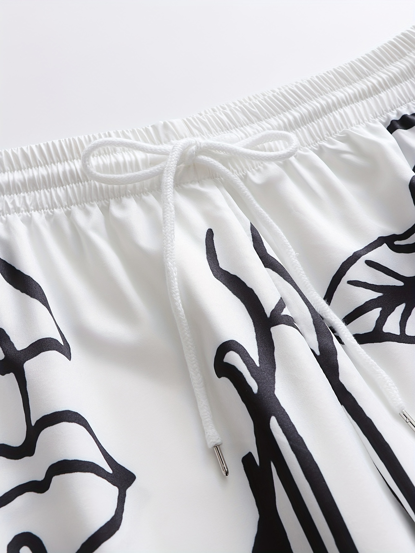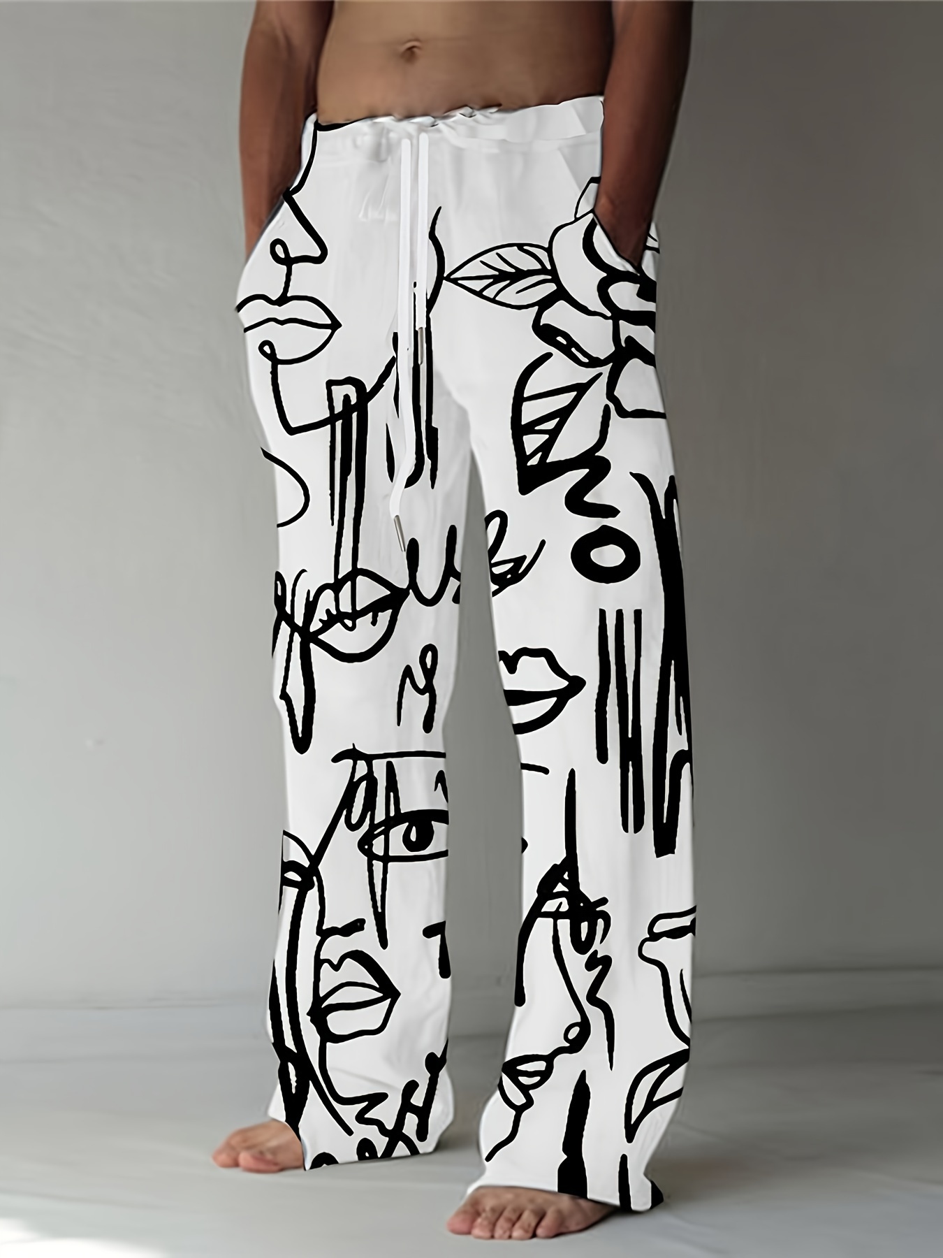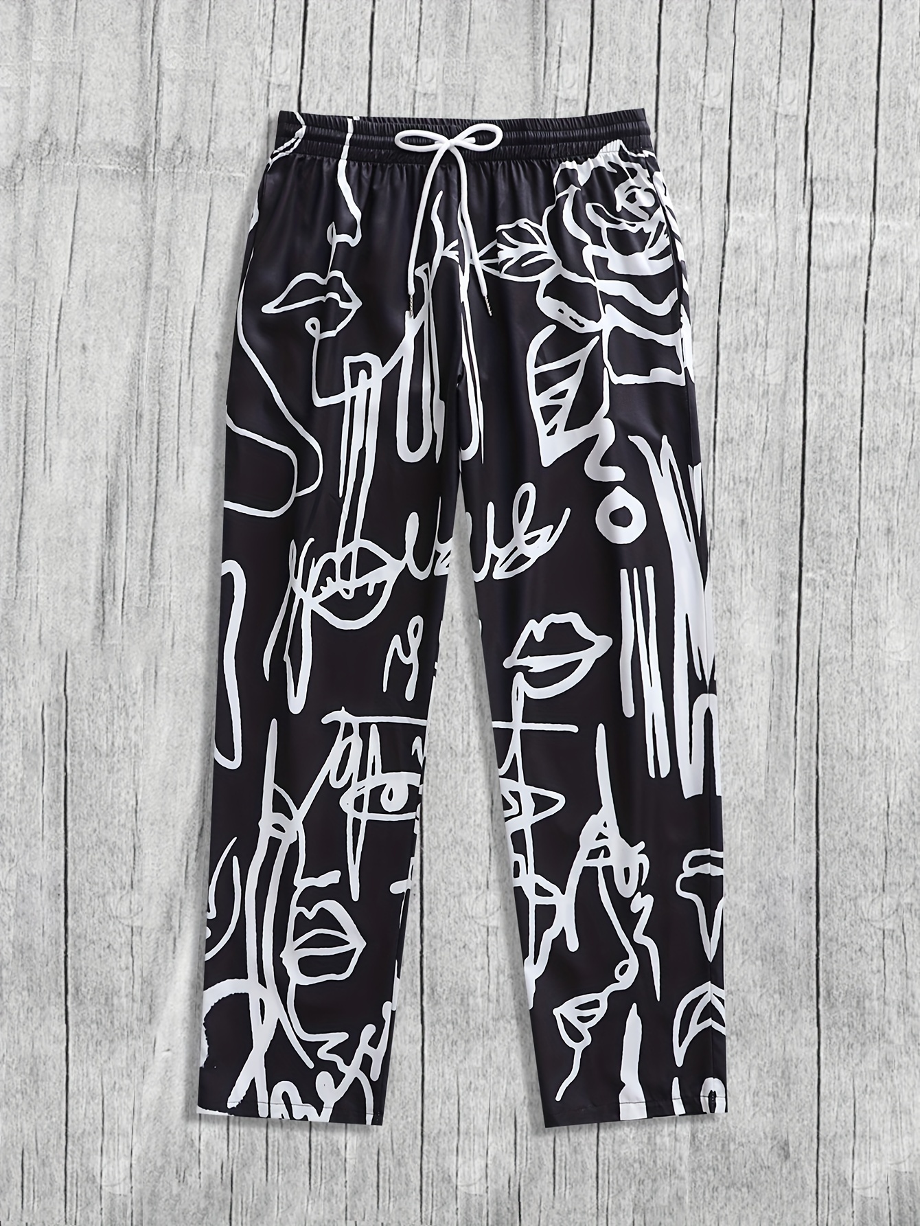 Men's Casual Athletic Joggers with Abstract Face Print - Loose Fit, Polyester Blend, Machine Washable