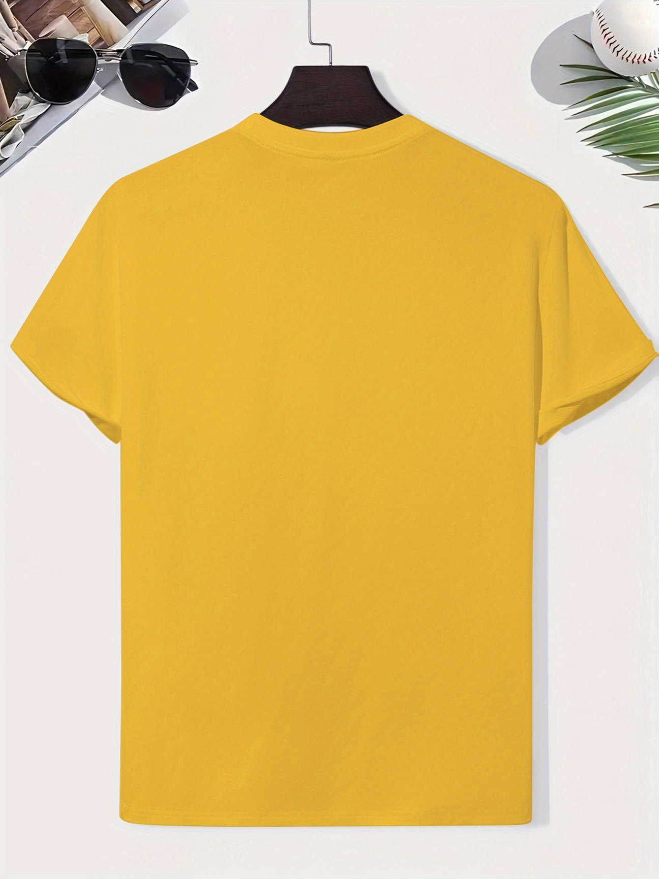 Stylish Men's Short-Sleeve T-Shirt with Unique Letter Print - Breathable Polyester Blend, Crew Neck, Casual Summer Top for Adults