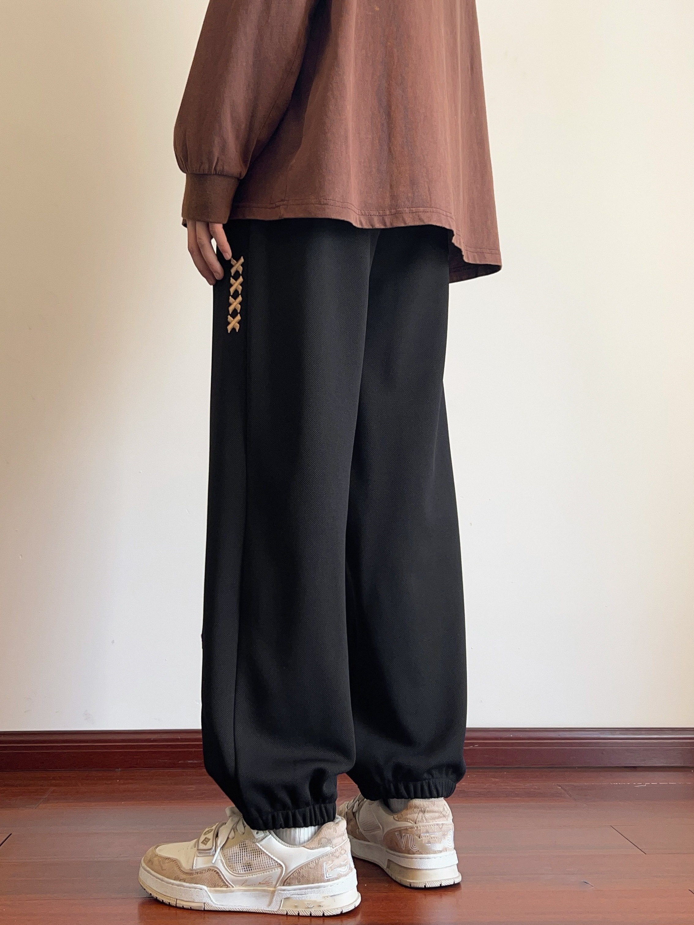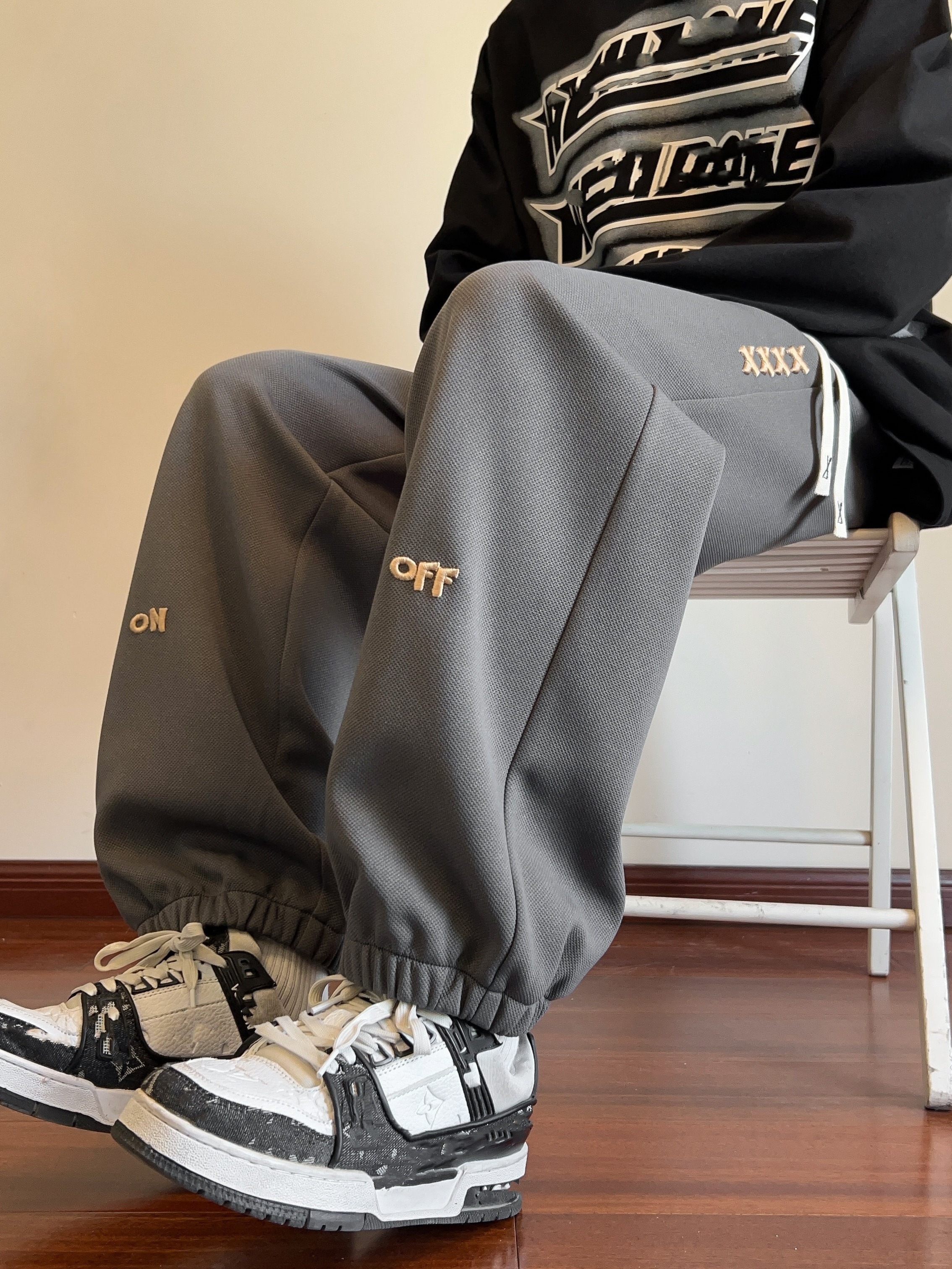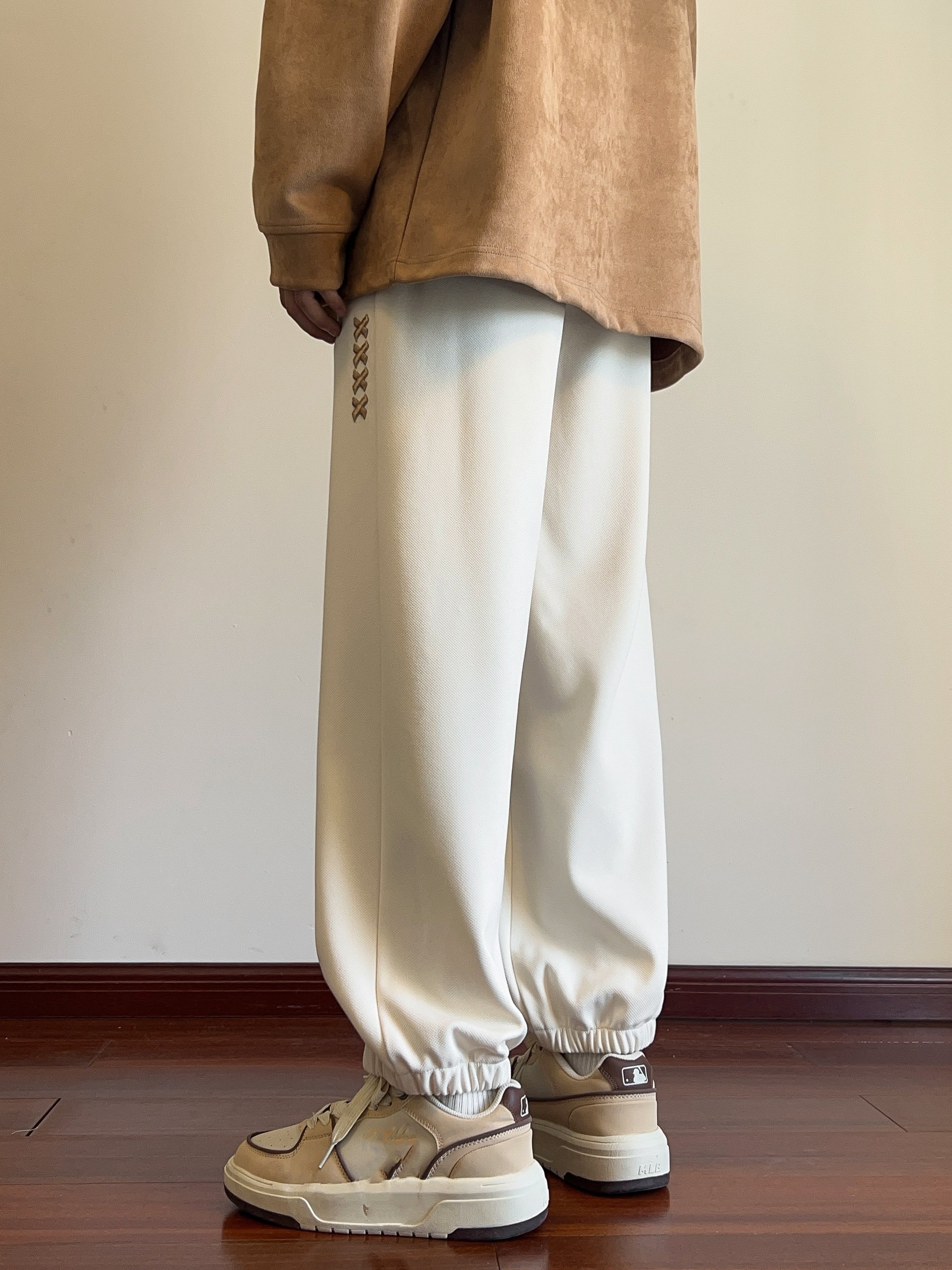 Men's Casual Joggers with Embroidered Design - Comfy Drawstring Sweatpants for Spring & Fall, Versatile Loose Fit