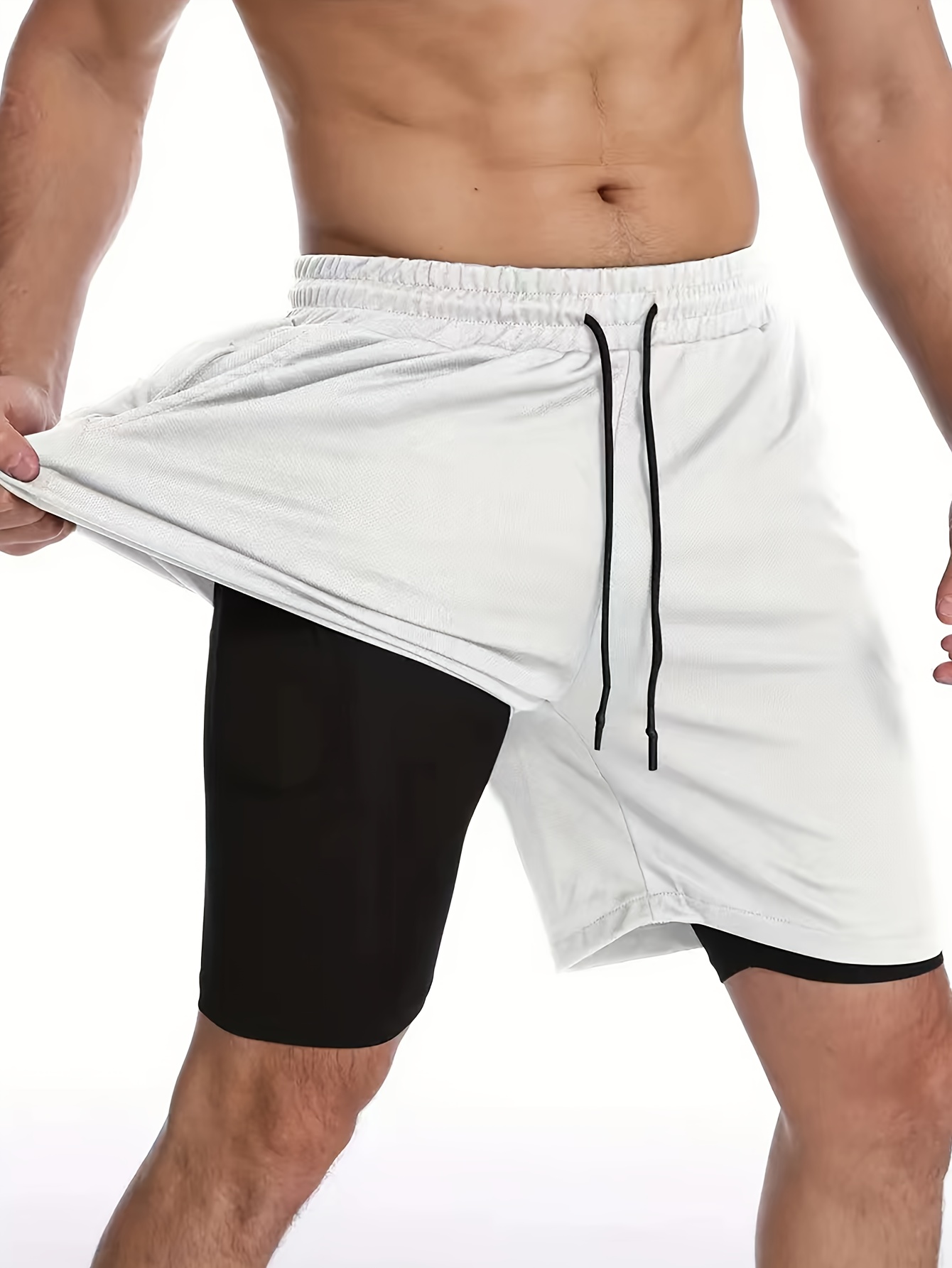 Men'S Drawstring Waist Compression Shorts, Skinny Fit, Quick-Dry, Breathable Sports Shorts, Double Layer Elastic Knitted Fabric, Cool Comfort, with Pockets for Daily Wear