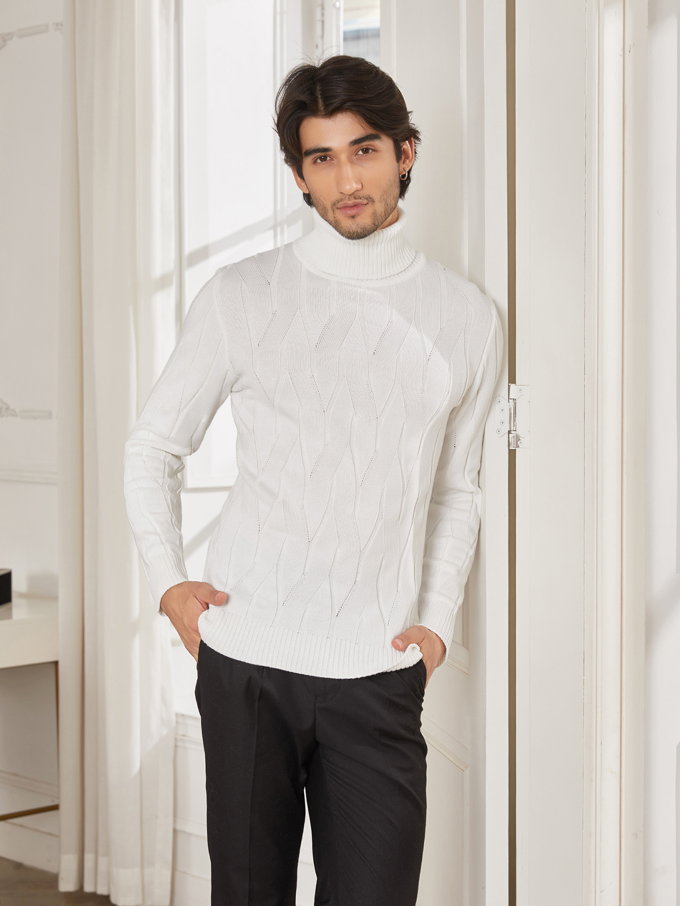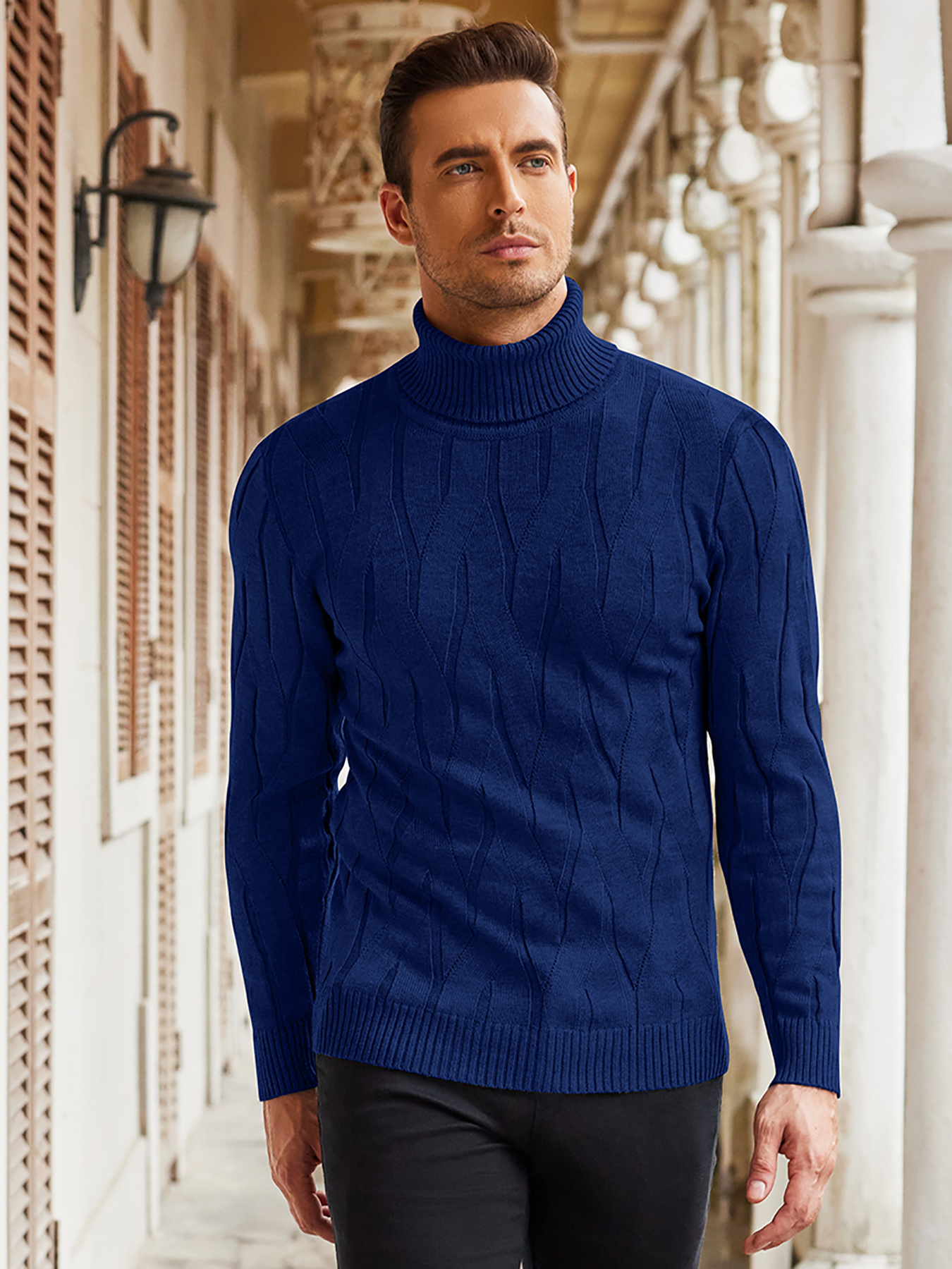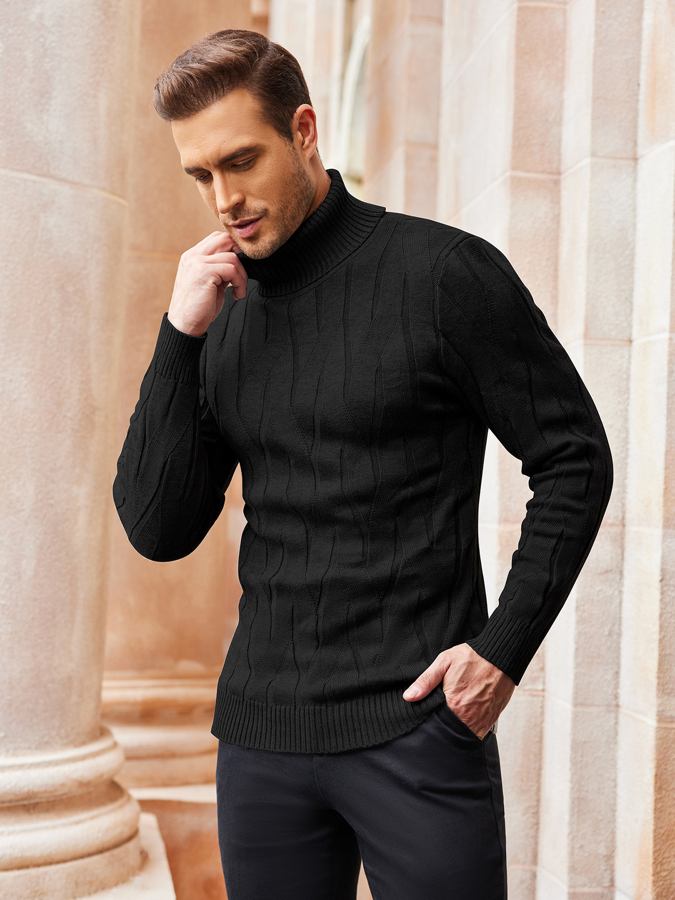 Men's Slim Fit Turtleneck Pullover - Casual Long Sleeve Knit Sweater, Machine Washable