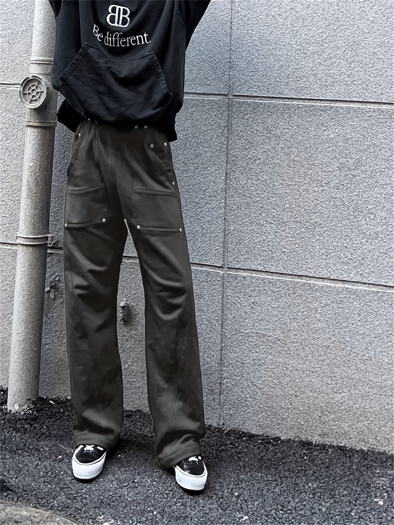Men's Trendy Solid Color Street Style Loose Fit Pants, Comfy Casual Classic Cotton Trousers For Men's Outdoor Activities