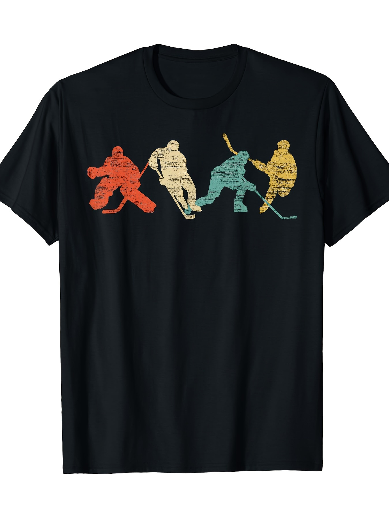 Men's Vintage-Inspired Ice Hockey Graphic Tee - Soft Cotton, Crew Neck, Short Sleeve - Perfect for Casual Wear & Gifts