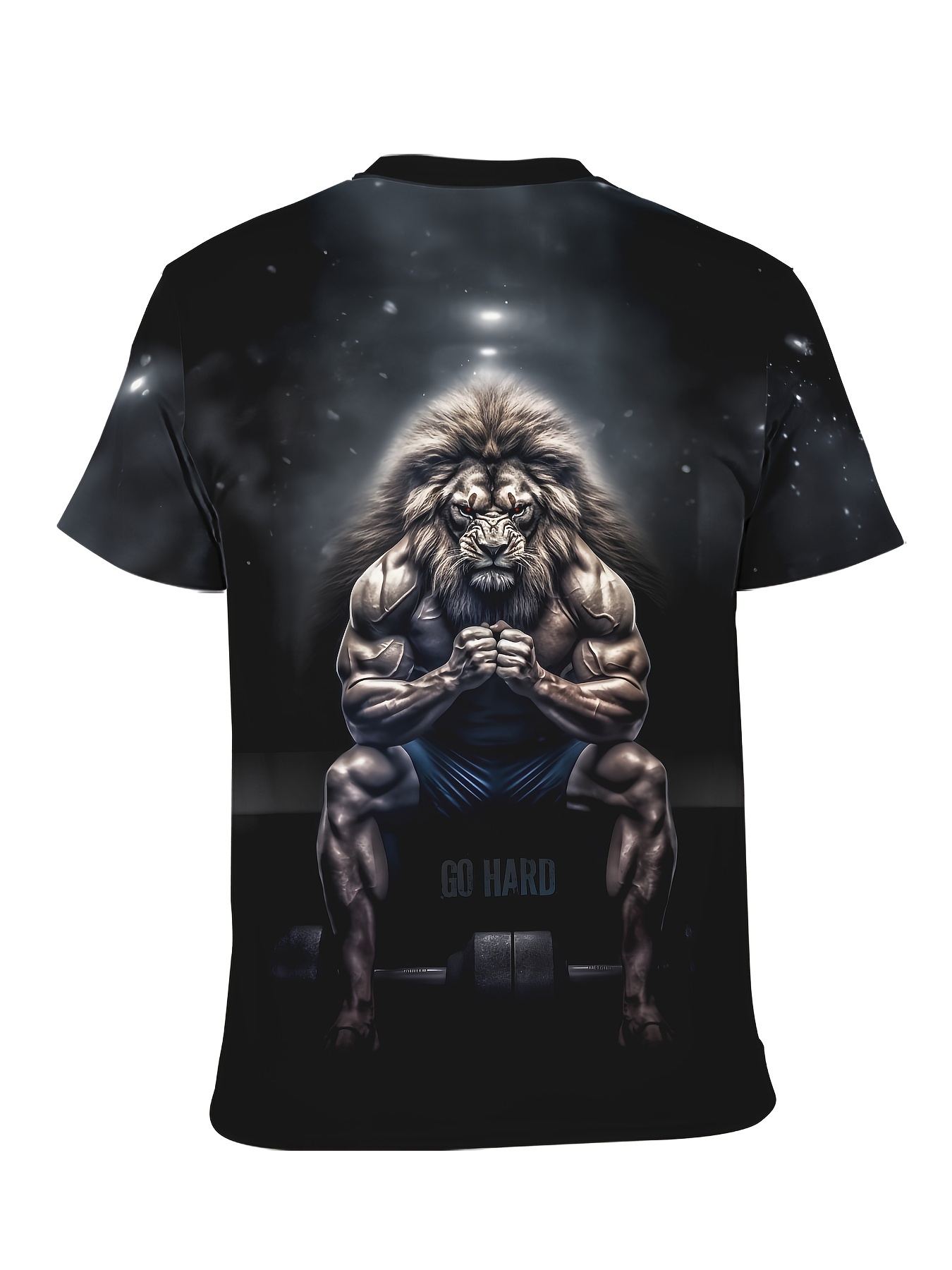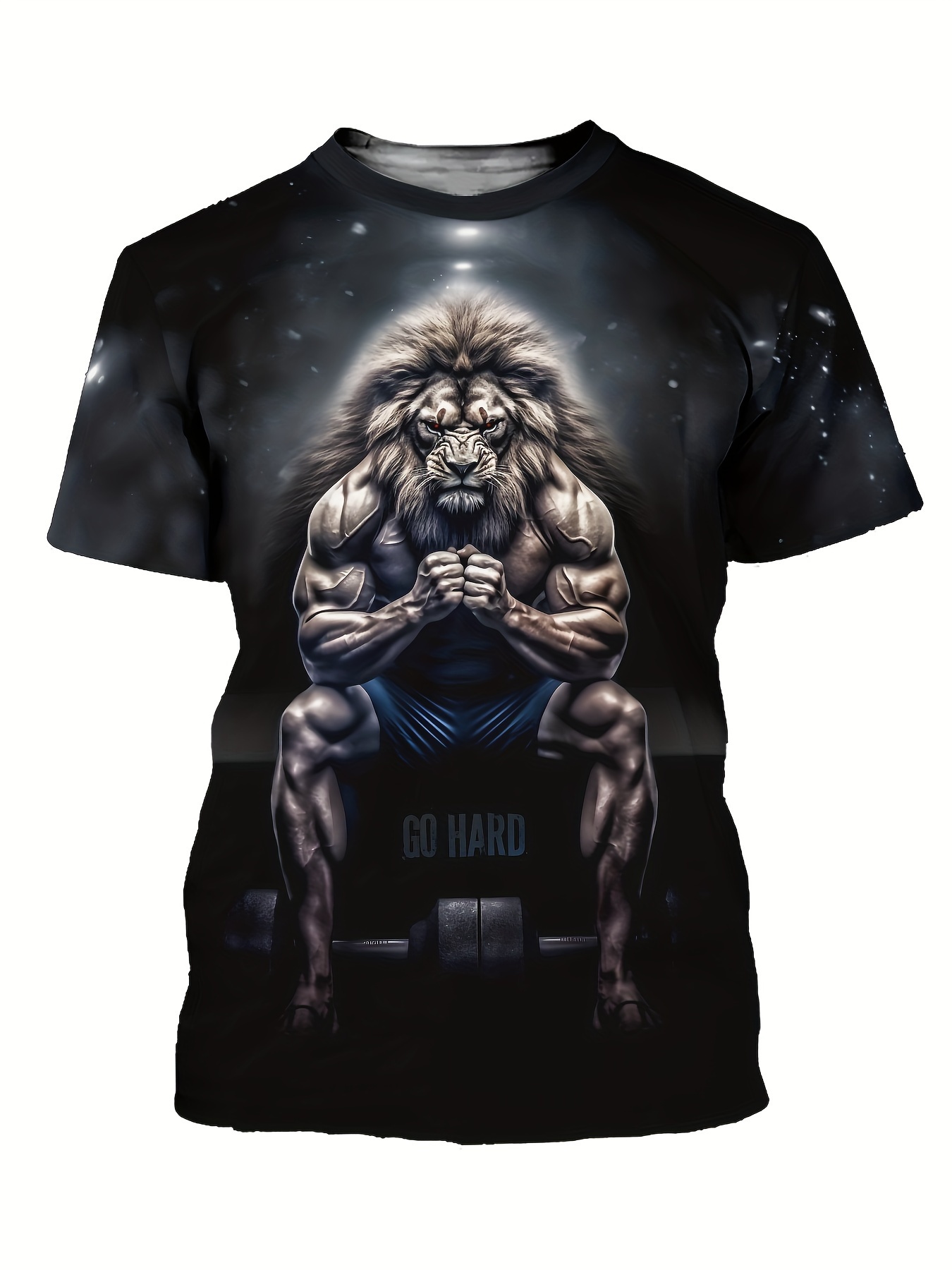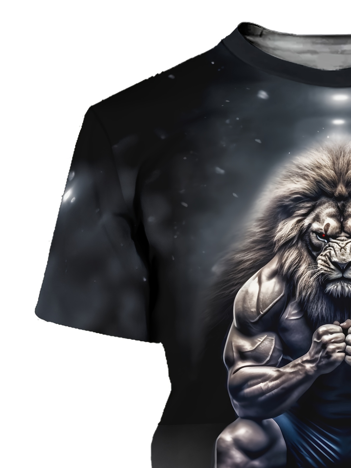 Novelty Lion Pattern 3D Printed Crew Neck Short Sleeve T-shirt For Men, Casual Summer T-Shirt For Daily Wear And Vacation Resorts