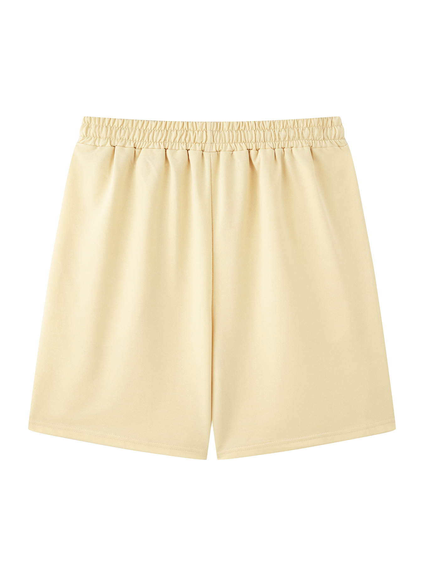 1pc Crane Emblem Casual Shorts, Polyester Knit Fabric with Slight Stretch, Regular Fit with Pockets, Alphabet Pattern - Comfortable Summer Wear