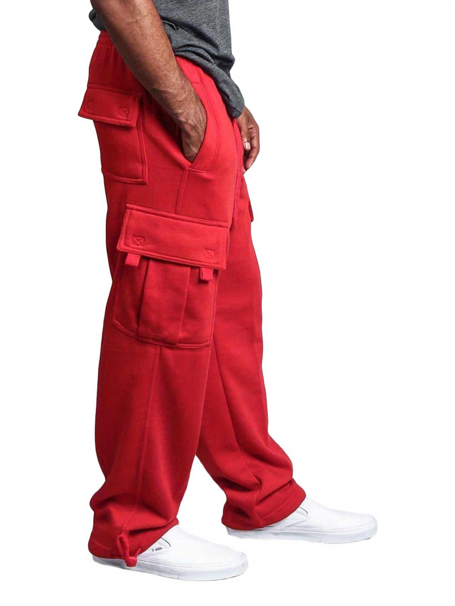 1pc Men'S Casual Cotton Cargo Pants - Solid Color, Mid Waist, Slight Stretch, Regular Fit, Woven Fabric, No Belt, Fall Season, Adult - Drawstring Elastic Waist, Loose Fit Yoga Beach Trouser