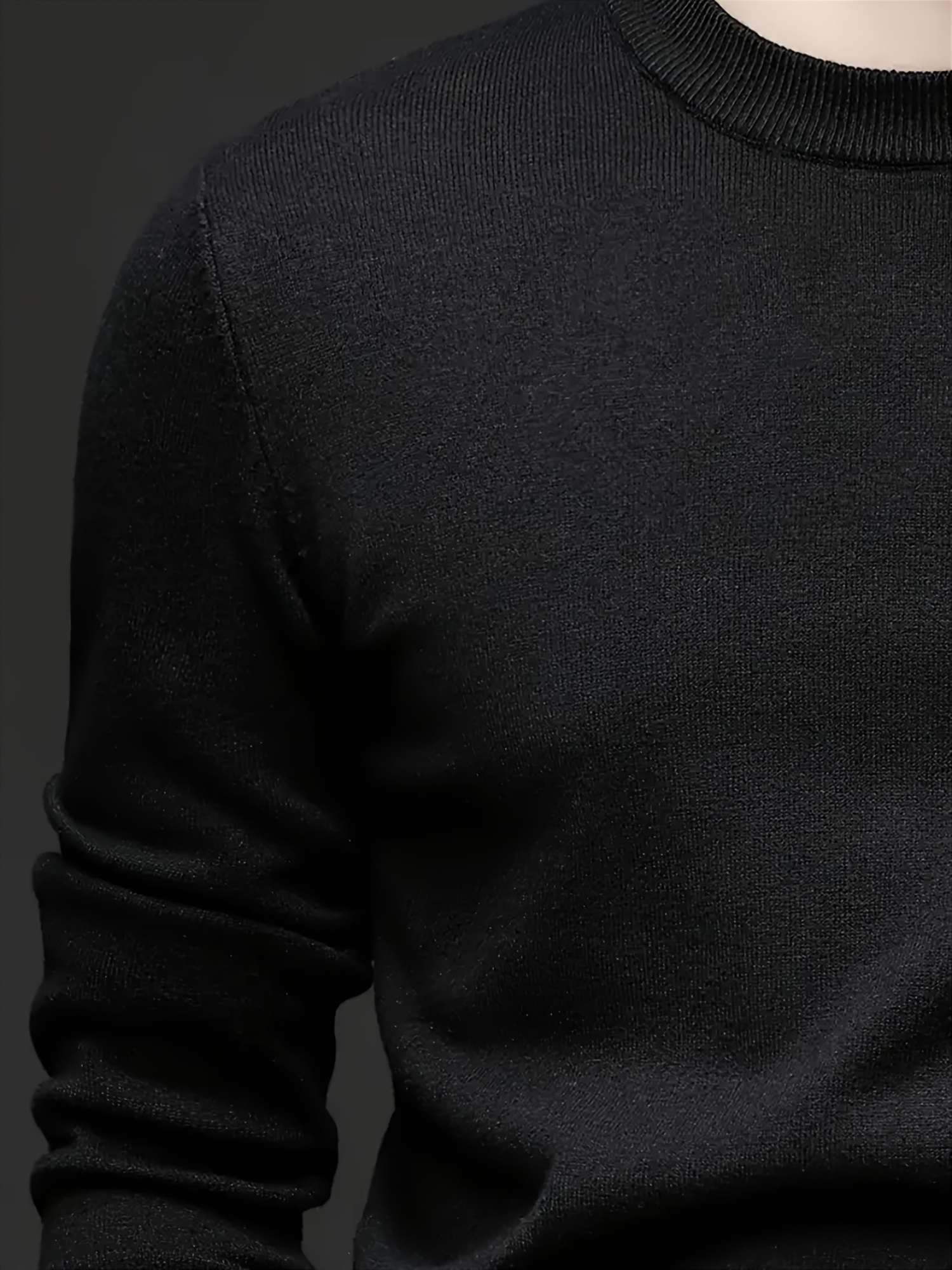 1pc Men'S Casual Crew Neck Viscose Knit Sweater - Solid Color Pullover with Medium Stretch, Regular Fit, Long Sleeve - Knit Fabric Sweatshirt for Autumn and Winter