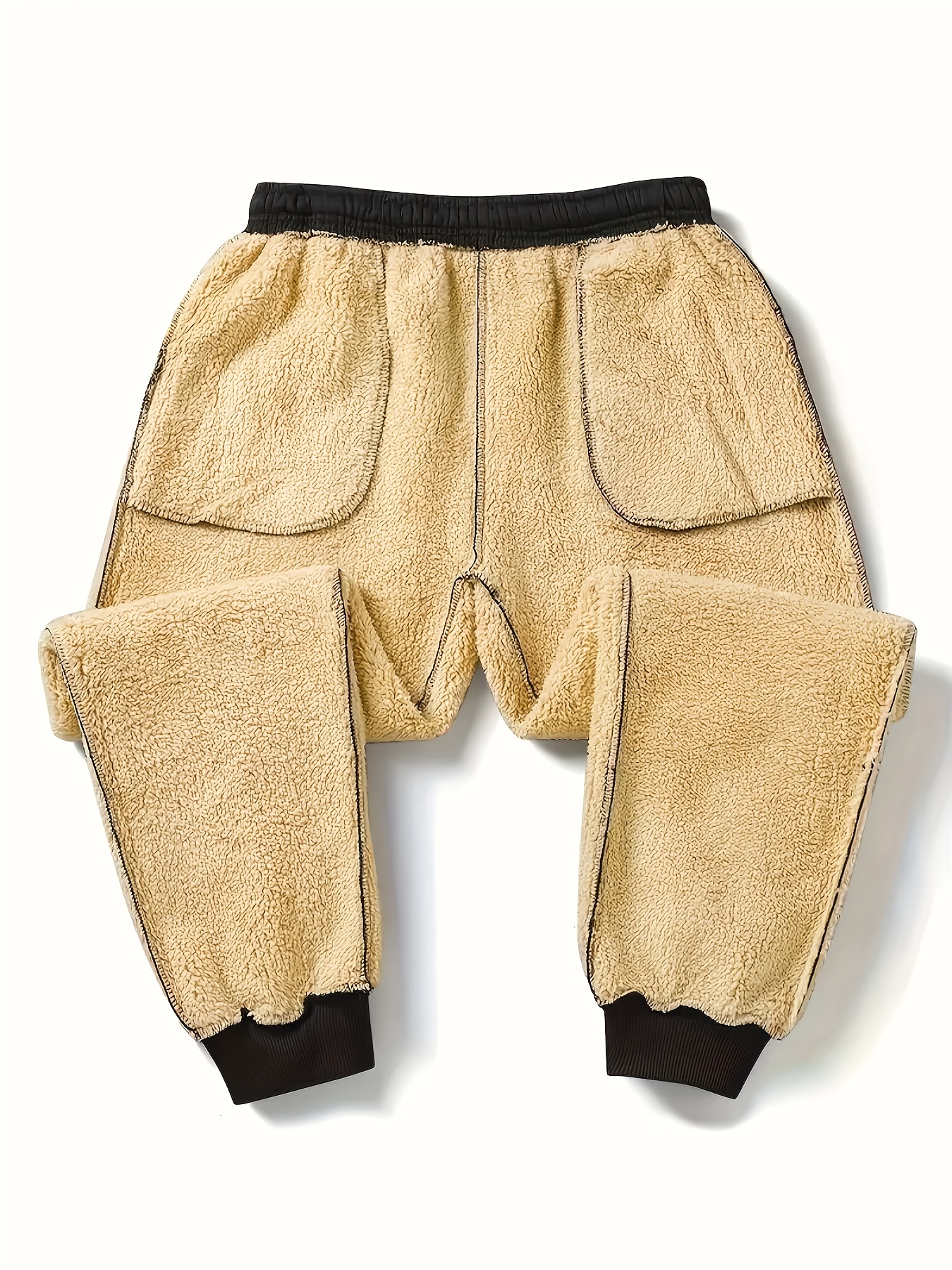1pc Men'S Casual Mid Waist Sweatpants, Fall/Winter Thick Fleece Lined, Solid Color Polyester Knit Fabric, Non-Stretch, Regular Fit Drawstring Waist, Weekend Comfort Warmth, No Belt - Polyester Fiber Filled