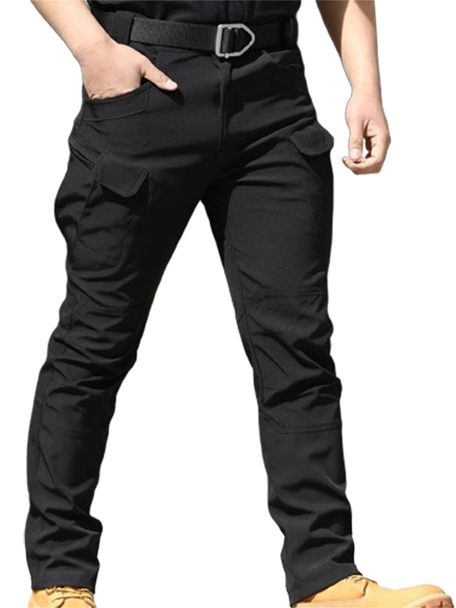 1pc Men'S Tactical Cargo Pants - Solid Color, All-Season, Polyester, Regular Fit, Slight Stretch, Multi-Pocket Design, Casual Style, Woven Trousers for Adults