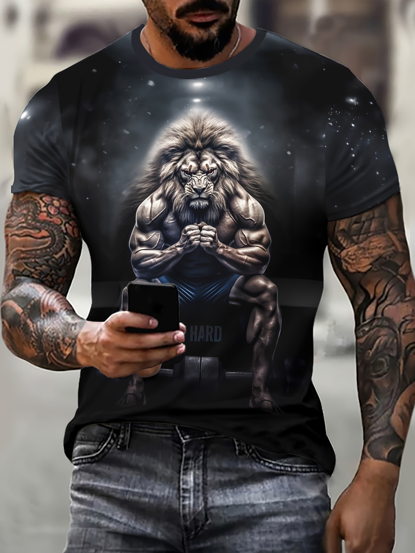 Novelty Lion Pattern 3D Printed Crew Neck Short Sleeve T-shirt For Men, Casual Summer T-Shirt For Daily Wear And Vacation Resorts