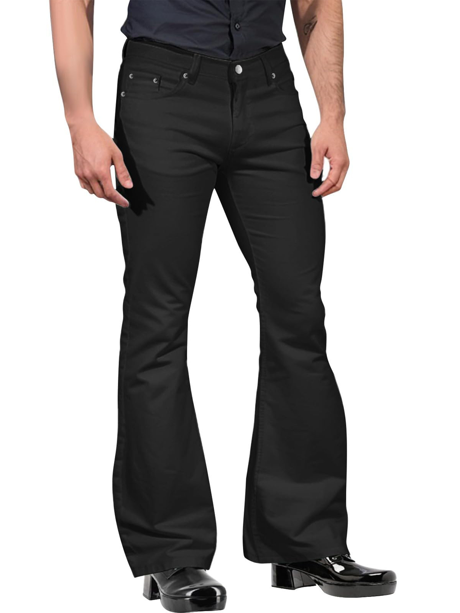 Men's Vintage-Inspired Flare Pants - Solid Color, Mid-Rise Bell Bottoms with Cotton Blend, Machine Washable